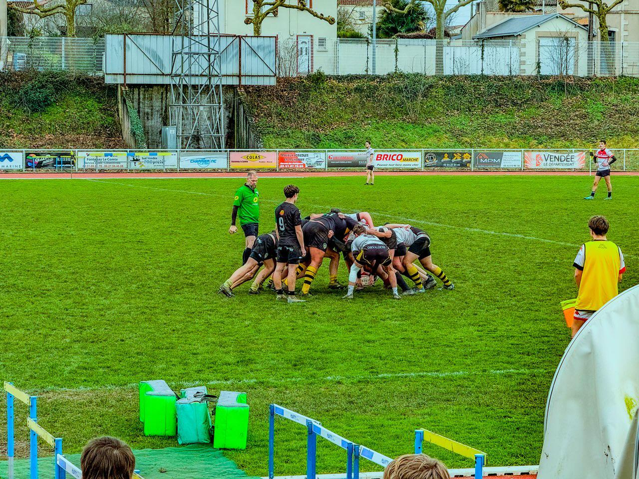 Malgré ce coup dur, nos joueurs ne baissent pas les bras. Grâce à une bonne construction du jeu, des protections de rucks propres et une défense solide, nous restons au contact du score pendant la grande majorité du match. L’engagement et la solidarité du groupe sont exemplaires.