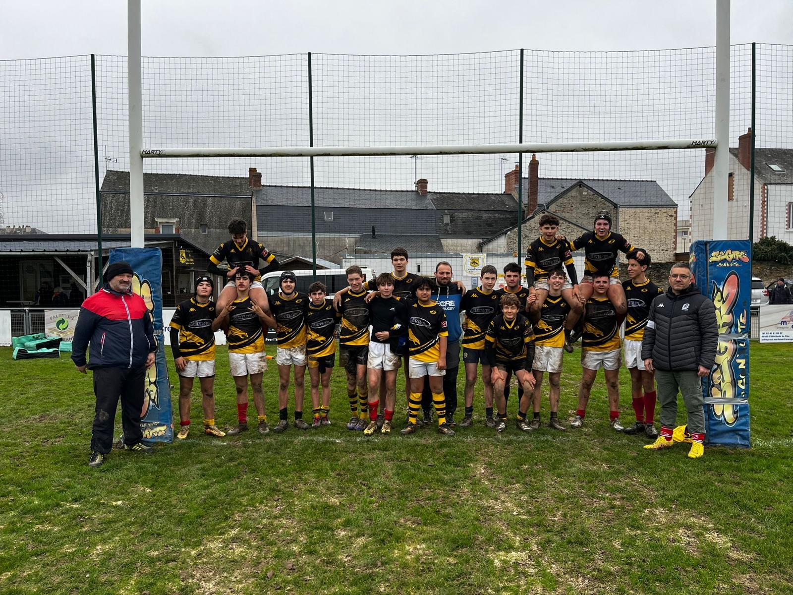 Deux matchs ont été disputés face à Guenrouet, avec de beaux plaquages, de jolies passes, beaucoup d’envie et surtout un très bon jeu collectif. Quelques placages et raffuts un peu hauts sont à signaler, mais les joueurs ont su se reprendre très rapidement.