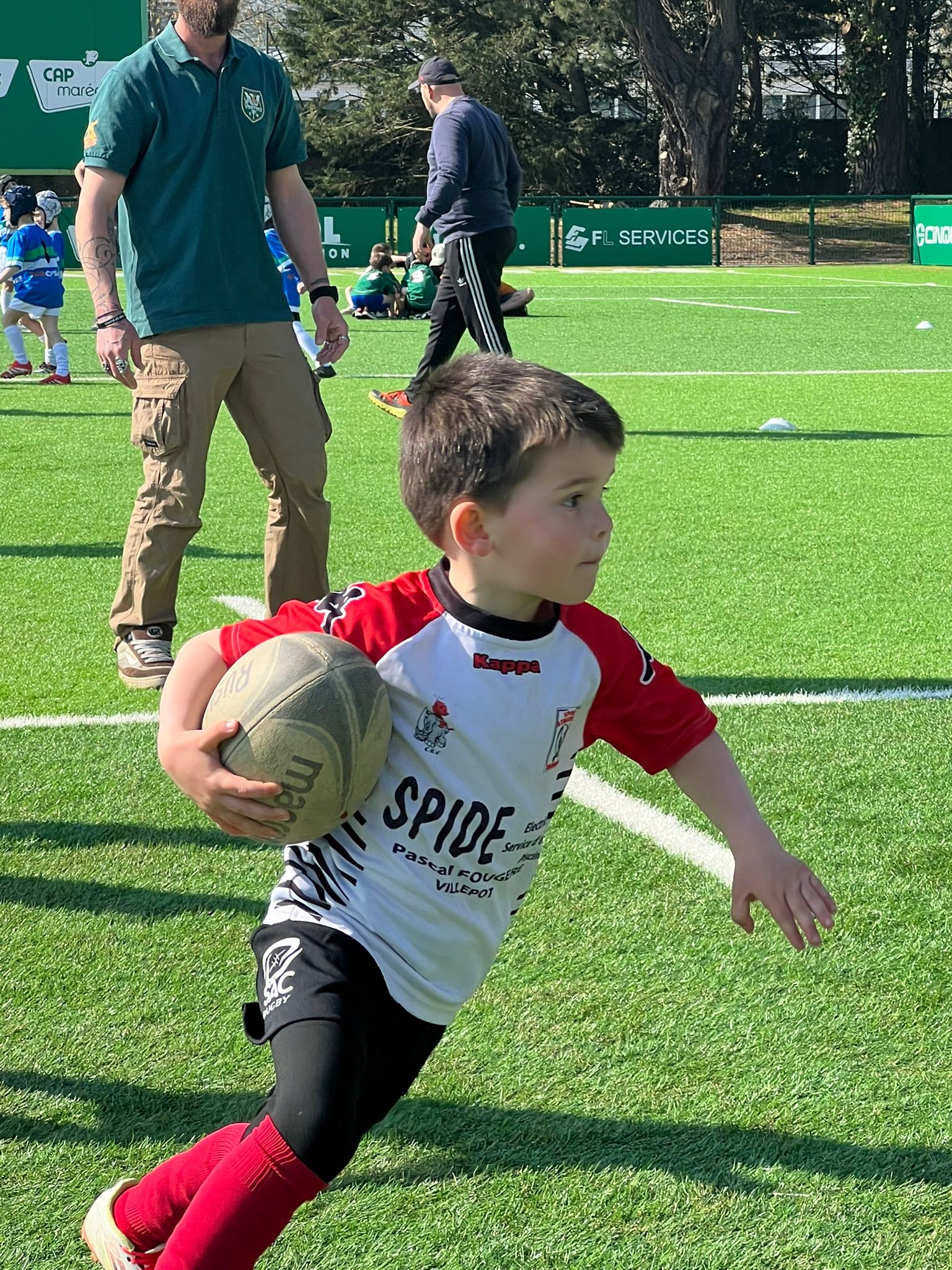 Cerise sur le gâteau : des mêlées et des touches ont pu être intégrées au match, pour le plus grand plaisir des U10, qui ont visiblement beaucoup apprécié cette immersion dans le jeu « des grands ».